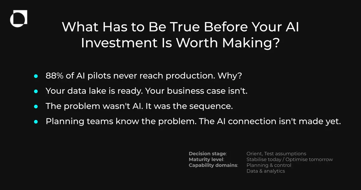 That question does not have a universal answer, which is partly why it keeps coming up. The variables — data maturity, problem clarity, organisational readiness, the complexity of the decisions being automated — differ enough between companies, and between different parts of the same supply chain, that the case studies only get you so far. At some point the work is internal, and it involves sitting with the question rather than reaching for the next example of someone else who got it right.