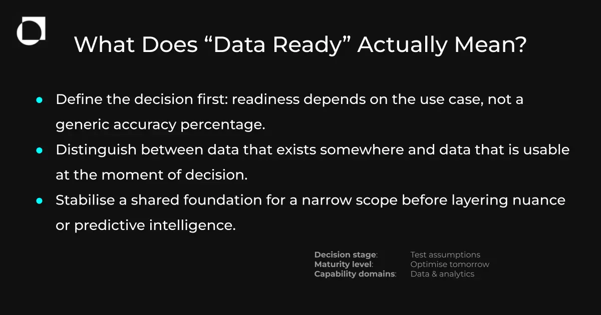 - Are you measuring readiness against that specific decision, rather than against a generic enterprise-wide benchmark?